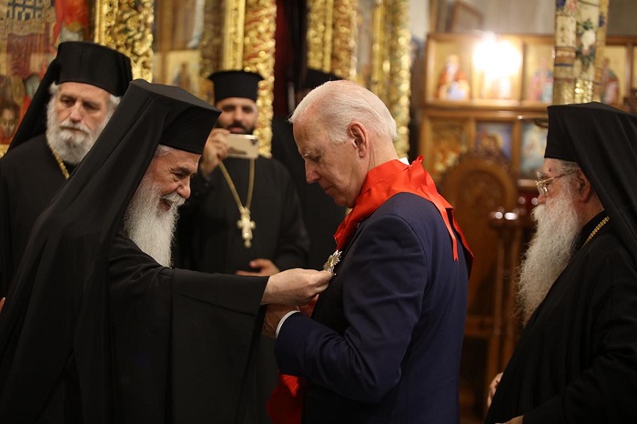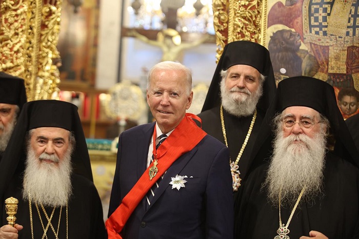 وسلّم البطريرك ثيوفيلوس الثالث الرئيس الأميركي جو بايدن رسالة نيابة عن بطاركة ورؤساء كنائس الأراضي المقدسة، أكدوا فيها ضرورة تحقيق السلام والاستقرار في المنطقة، وأثر السلام والاستقرار الايجابي على الوجود المسيحي الأصيل في الأراضي المقدسة.