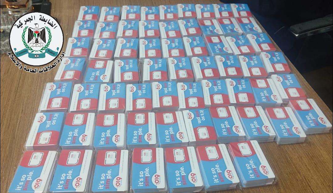 رام الله 28-7-2022 وفا- ضبط جهاز الضابطة الجمركية، في محافظة رام الله والبيرة، اليوم الخميس، 500 شريحة اتصال إسرائيلية، ممنوعة من التداول في السوق الفلسطينية؛ لضررها على الجانب الاقتصادي والأمني والاجتماعي.