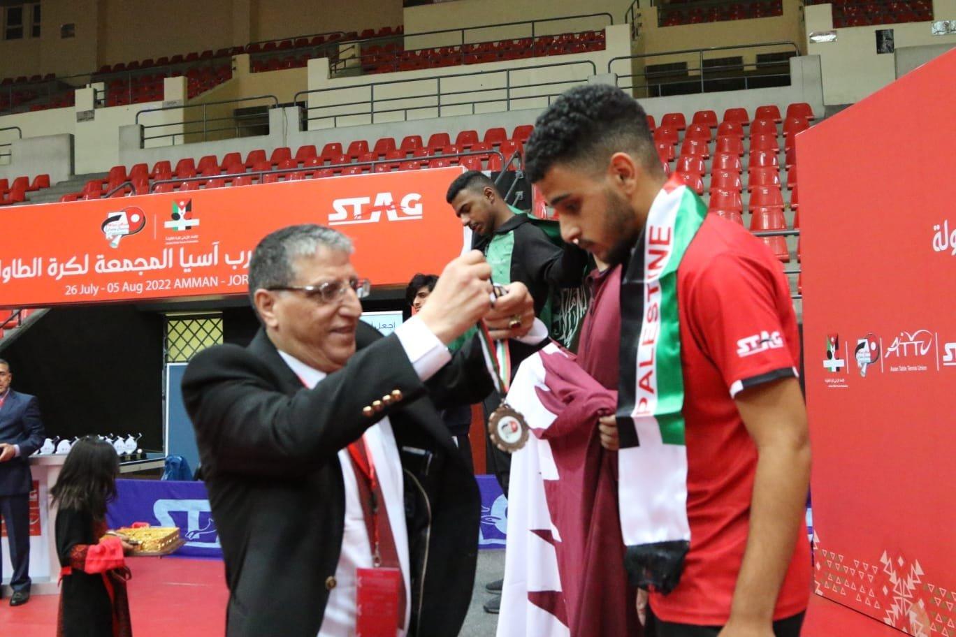 القدس 31-7-2022 وفا- توج لاعب المنتخب الوطني لكرة الطاولة عبد الله المغربي، ببرونزية بطولة غرب آسيا، المقامة في العاصمة الأردنية عمّان.