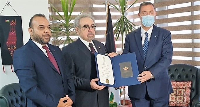 القاهرة 6-7-2022 وفا- نيابة عن الرئيس محمود عباس، قلد سفير دولة فلسطين لدى مصر ومندوبها الدائم بالجامعة العربية دياب اللوح، والأمين العام لاتحاد كتاب وأدباء فلسطين مراد السوداني، اليوم الأربعاء، رئيس النقابة العامة لاتحاد كتاب مصر، الأمين العام لاتحاد الأدباء والكتاب العرب الشاعر والمفكر علاء عبد الهادي وسام الثقافة والعلوم والفنون "مستوى التألق".