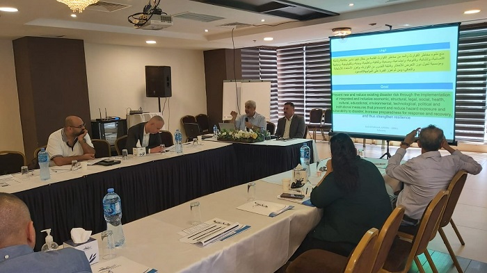 رام الله 15-8-2022 وفا- عقد الفريق الفني الوطني برئاسة رئيس المركز الوطني لإدارة مخاطر الكوارث حسن أبو العيلة اجتماعا، اليوم الإثنين، مع فريق خبراء الأمم المتحدة للحد من مخاطر الكوارث، وذلك من أجل وضع الترتيبات اللازمة والاطلاع على مجريات عقد الورشة الوطنية لاستعراض وتقييم منتصف المدة لإطار "سنداي"، خلال الفترة 23-24/8/2022.
