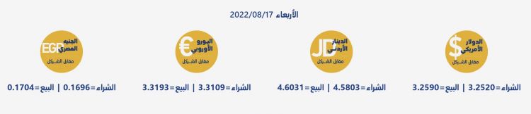 رام الله 17-8-2022 وفا- جاءت أسعار العملات مقابل الشيقل الإسرائيلي، اليوم الأربعاء، حسب سلطة النقد، على النحو التالي: