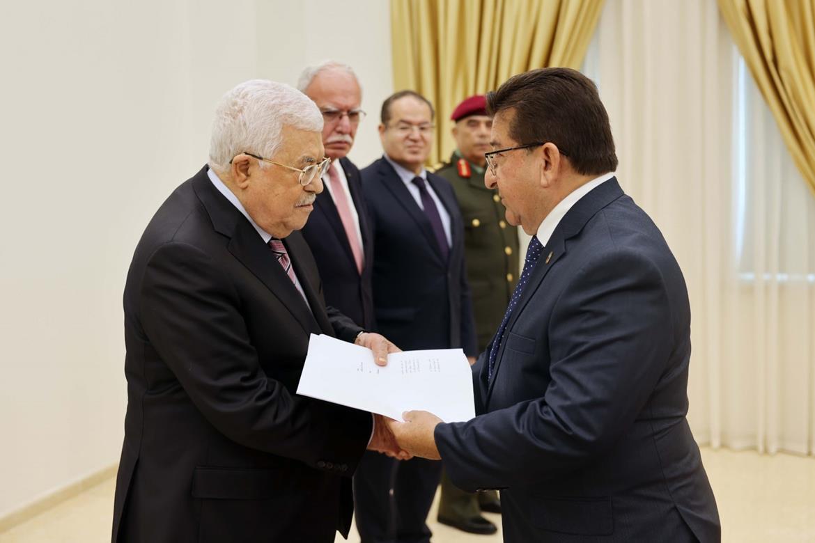 رام الله 1-9-2022 وفا- تقبل رئيس دولة فلسطين محمود عباس، أوراق اعتماد السيد بايرون سوكيلاندا فالديفييسو، سفيرا فوق العادة ومفوضاً لجمهورية الإكوادور لدى دولة فلسطين.
