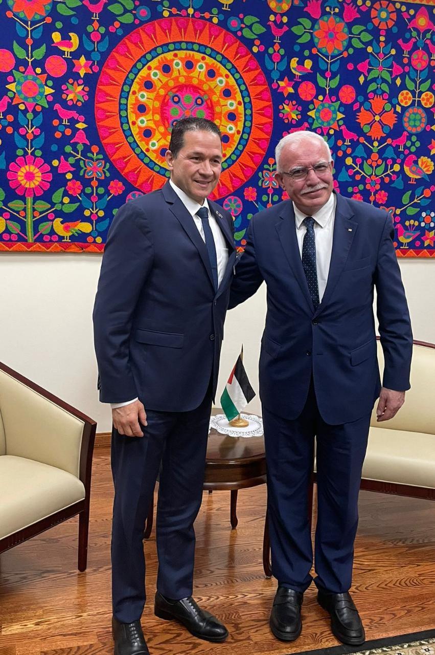 نيويورك 20-9-2022 وفا- التقى وزير الخارجية والمغتربين لدولة فلسطين رياض المالكي، نظيره الفنزويلي، كارلوس فاريا تارتوسا، على هامش اعمال الجمعية العامة للأمم المتحدة في دورتها الـ٧٧ المنعقدة حاليا في نيويورك.