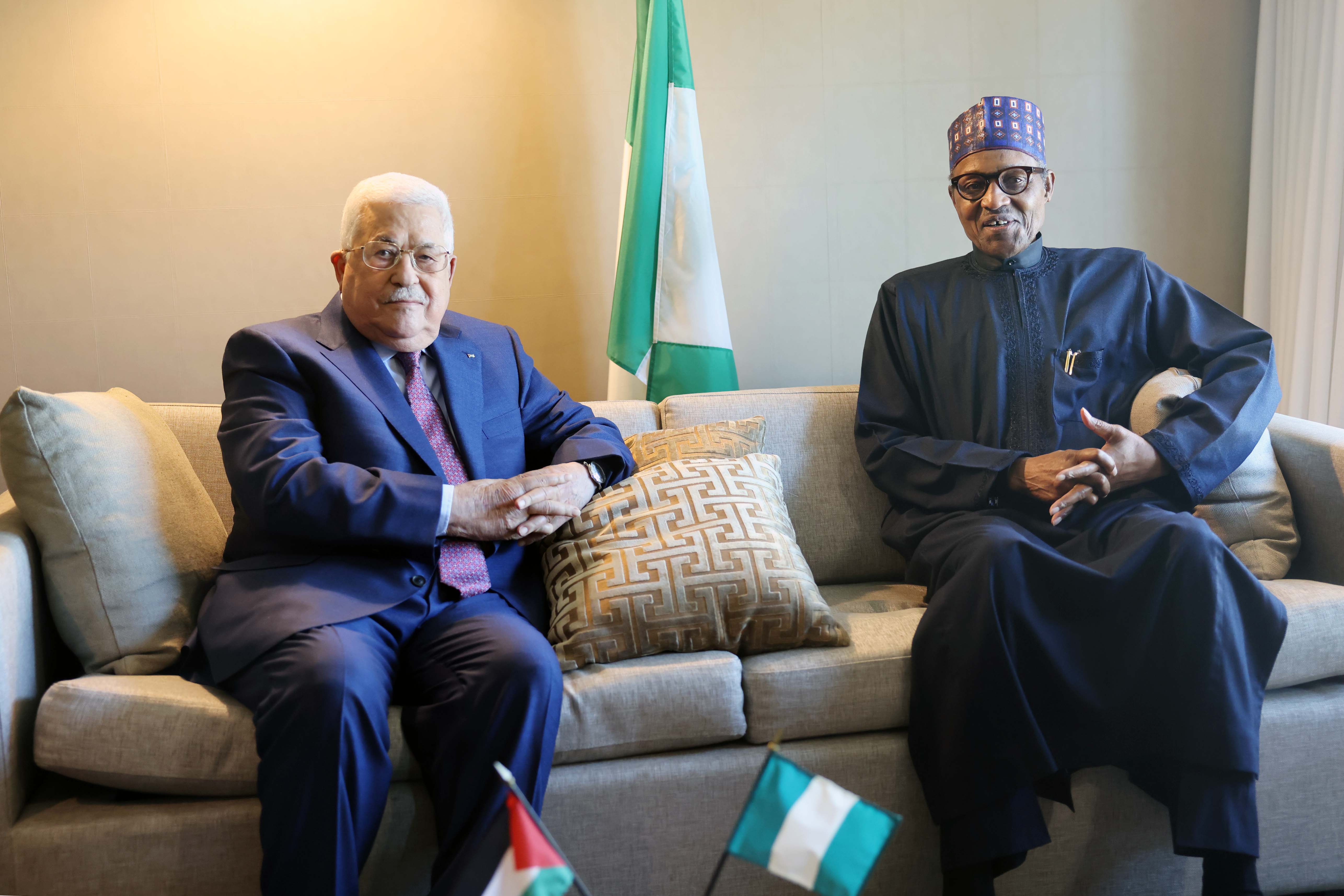 نيويورك 21-9-2022 وفا- اجتمع رئيس دولة فلسطين محمود عباس، اليوم الأربعاء، مع الرئيس النيجيري محمد بخاري، وذلك على هامش اجتماعات الدورة الـ 77 للجمعية العامة للأمم المتحدة.