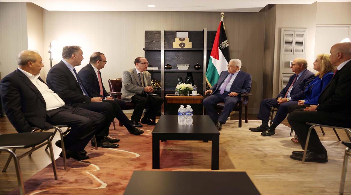 نيويورك 21-9-2022 وفا- استقبل رئيس دولة فلسطين محمود عباس، بمقر إقامته في نيويورك، اليوم الأربعاء، وفدا ضم مسؤولين من الجالية الفلسطينية في الحزبين الديمقراطي والجمهوري، ورئيس اتحاد أبناء رام الله في الولايات المتحدة الأميركية عصام دقمان، وذلك على هامش اجتماعات الدورة الـ 77 للجمعية العامة للأمم المتحدة.