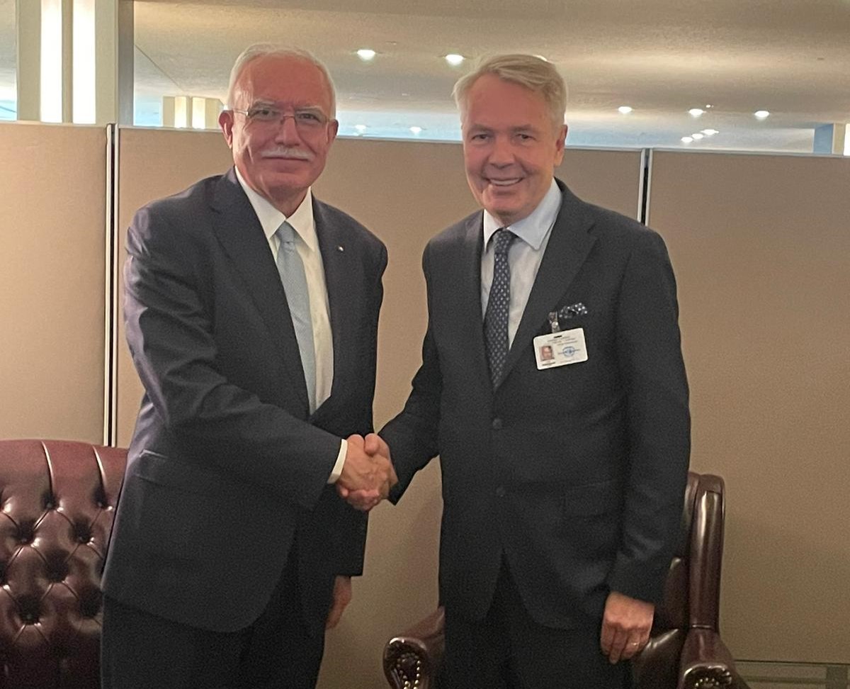 نيويورك 21-9-2022 وفا- أطلع وزير الخارجية والمغتربين رياض المالكي، وزير خارجية فنلندا بيكا هافيستوا، على آخر التطورات السياسية، والاوضاع في الارض الفلسطينية المحتلة، بما فيها القدس.