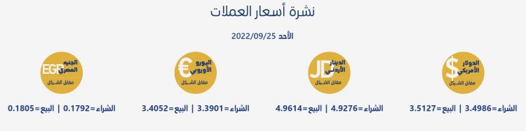 رام الله 25-9-2022 وفا- جاءت أسعار العملات مقابل الشيقل الإسرائيلي، اليوم الأحد، حسب سلطة النقد، على النحو التالي: