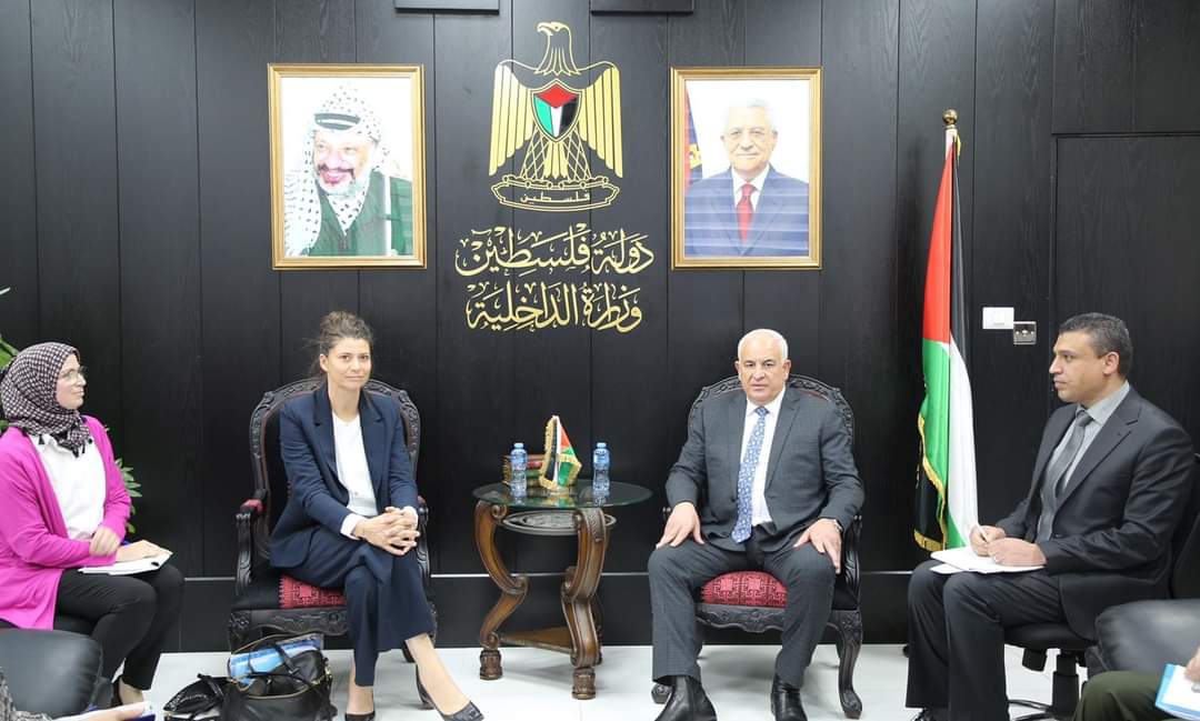 رام الله 27-9-2022 وفا- بحث وزير الداخلية زياد هب الريح، اليوم الثلاثاء، مع مديرة برنامج الشرق الأوسط وشمال افريقيا في مركز جنيف لحوكمة قطاع الأمن (ديكاف) آني جروبيت آفاق التعاون وآليات العمل المشترك.