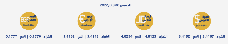 رام الله 8-9-2022 وفا- جاءت أسعار العملات مقابل الشيقل الإسرائيلي، اليوم الخميس، حسب سلطة النقد، على النحو التالي: