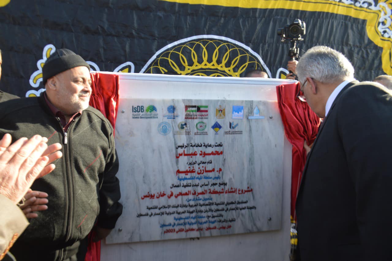 خان يونس 12-1-2023 وفا- وضع اليوم الخميس، حجر الأساس لمشروع إنشاء شبكات ومضخة الصرف الصحي في القرى الشرقية بخان يونس جنوب قطاع غزة، وذلك تحت رعاية سيادة الرئيس محمود عباس.