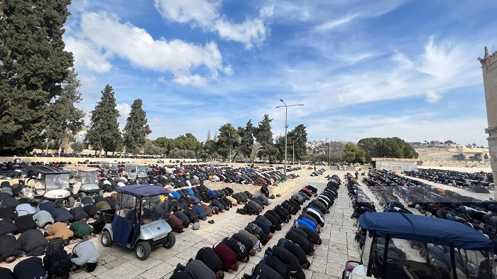 وقدرت دائرة الأوقاف الإسلامية في القدس، في بيان، أن نحو 70 ألف مصلٍ أدوا صلاة الجمعة في رحاب المسجد الأقصى.