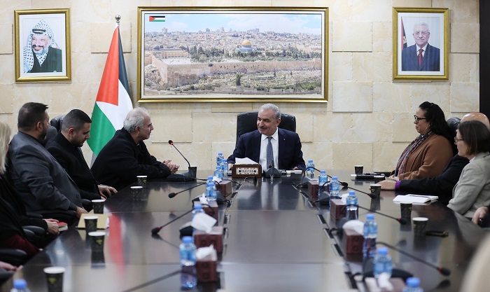 كما أطلع رئيس الوزراء الوفد على الهجمة التي يقوم بها الاحتلال على المقدسات الإسلامية والمسيحية في القدس، ومحاولات فرض وقائع متدهورة على الأرض، بالإضافة الى التحديات التي تفرضها الحكومة الإسرائيلية والممارسات العنصرية تجاه أبناء شعبنا.