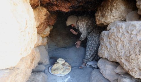 وفي مغارة ورثتها وعائلتها عن جد زوجها، تشعل المواطنة نعيمة حمامدة (50 عاما) الأم لـ8 أبناء من خربة جنبا، الطابون لصناعة الخبز وطهي الطعام في ظل غياب غاز الطهي عن القرى والخرب، وتقول: "نار الطابون لا تنطفئ في المسافر".