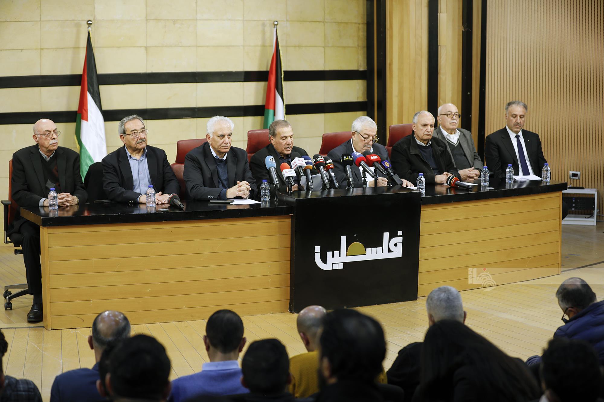 وأمام استمرار حكومة الاحتلال الإسرائيلي بعدم الالتزام والتنكر لقرارات الشرعية الدولية والاتفاقيات الموقعة، وتقويض الأسس التي قامت عليها عملية السلام برعاية دولية، وعدم استجابة حكومة الاحتلال الإسرائيلي للتحذيرات الفلسطينية والعربية والدولية لخطورة هذه الجرائم الإسرائيلية، المدانة والمرفوضة، قررت القيادة الفلسطينية في اجتماعها الطارئ اليوم، ما يلي: