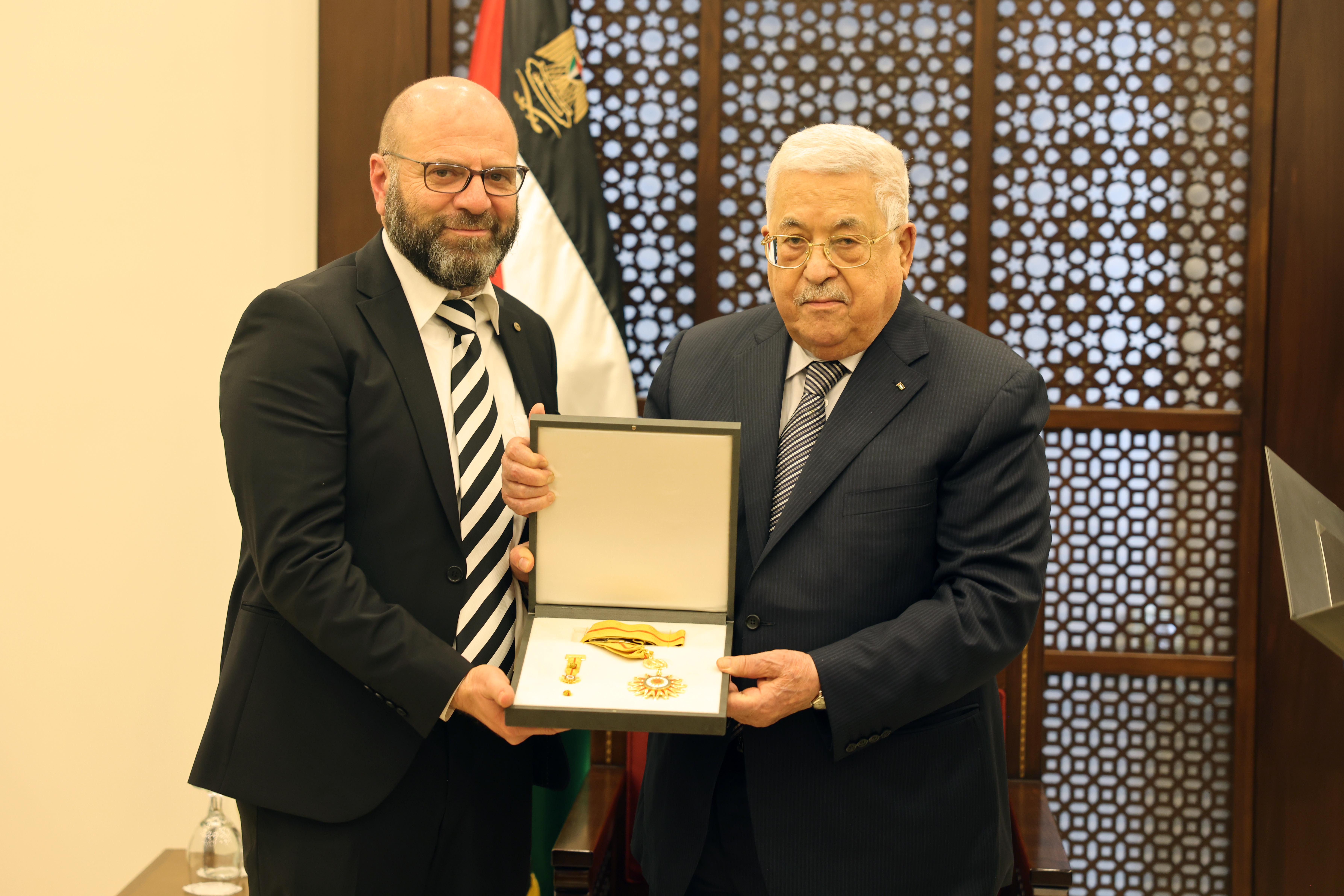 الرئيس يمنح الدكتور بشارة إلياس عوض نجمة بيت لحم