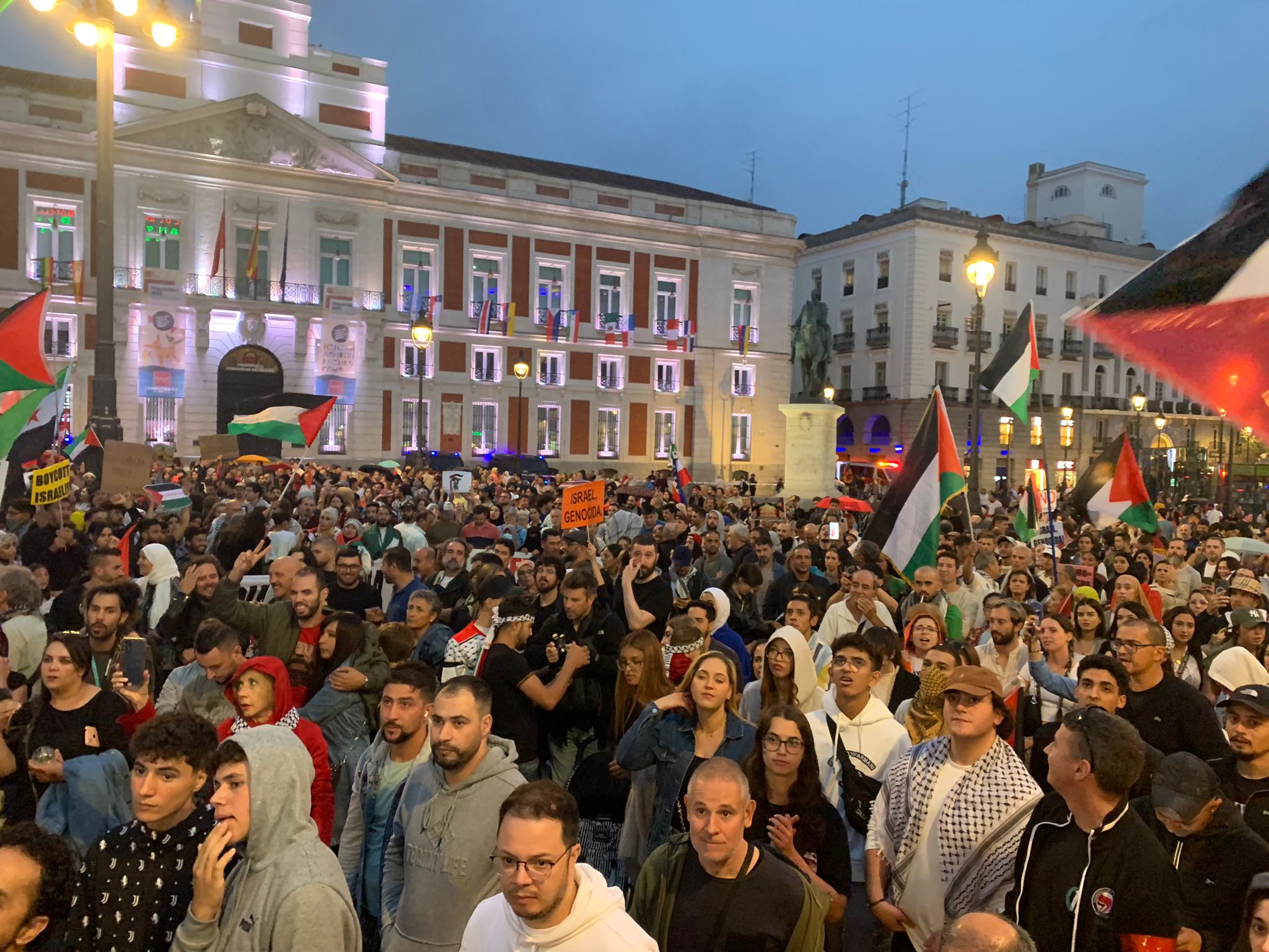 وطالبوا بتقديم رئيس حكومة الاحتلال بنيامين نتنياهو لمحكمة الجنايات الدولية، وهتفوا بحرية فلسطين، رافعين اعلام فلسطين، ولافتات كتب عليها "لا للحرب باسمنا"، "لا للمذبحة"، و"مدريد مع فلسطين"، و"احترموا حقوق الانسان".