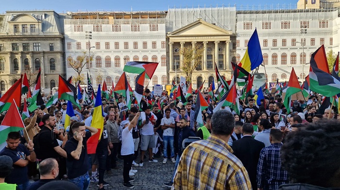 بوخارست 21-10-2023 وفا- تظاهر المئات من أبناء الجالية الفلسطينية والجاليات العربية والإسلامية وحشد من الشعب الروماني، في العاصمة بوخارست، تنديدا بعدوان الاحتلال الإسرائيلي المتواصل على شعبنا.