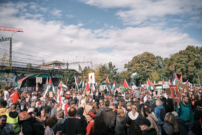 وفي مدينة زيوريخ، تظاهر أكثر من 8 آلاف شخص، تنديدا بالعدوان على شعبنا، رافعين الأعلام الفلسطينية ومرددين الشعارات المؤيدة للقضية الفلسطينية.