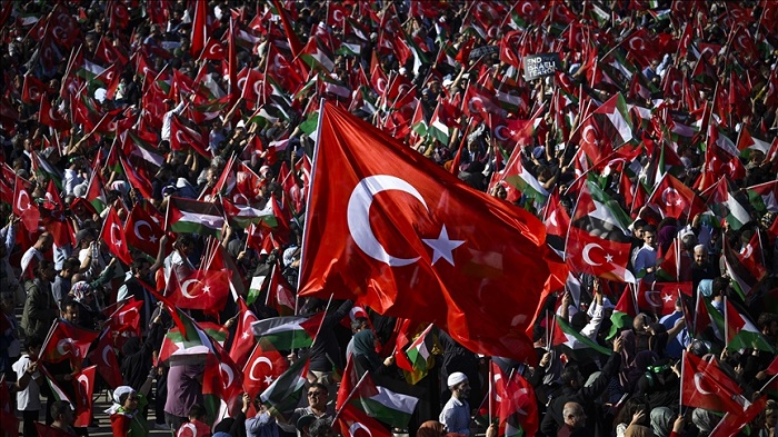 وبدأت أعداد كبيرة من الأتراك في مدينة إسطنبول، بعد ظهر السبت، المشاركة في تظاهرة حاشدة دعا إليها الرئيس رجب طيب أردوغان، ضد العدوان المستمر منذ 7 تشرين الأول الجاري.