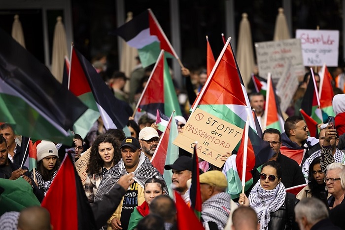 ففي العاصمة بيرن، تظاهر الآلاف أمام البرلمان الفدرالي ومقر الحكومة الفدرالية، مطالبين بوقف فوري لإطلاق النار وإنهاء الإبادة الجماعية بحق شعبنا في قطاع غزة. ورفع المتظاهرون الأعلام الفلسطينية واللافتات المنددة بالمجازر التي يرتكبها الاحتلال.