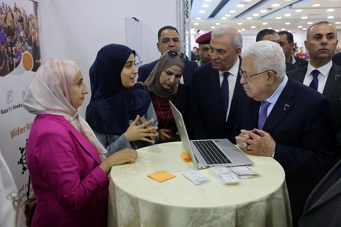 رام الله 3-10-2023 وفا- افتتح رئيس دولة فلسطين محمود عباس، اليوم الثلاثاء، أعمال المنتدى الوطني الثامن "الحياة الرقمية والإبداع.. حياة ذكية"، في مقر الهلال الأحمر الفلسطيني بمدينة البيرة.