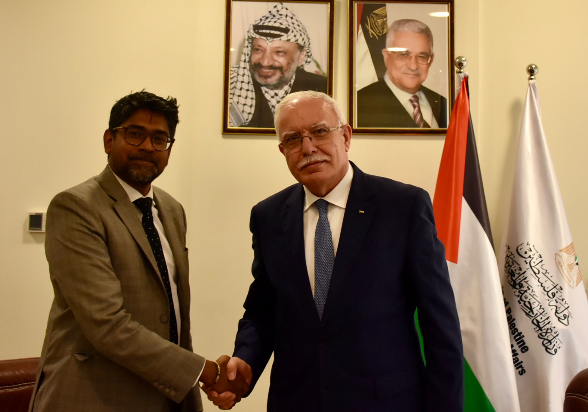 رام الله 3-10-2023 وفا- التقى وزير الخارجية والمغتربين رياض المالكي، اليوم الثلاثاء، في مقر الوزارة بمدينة رام الله، مدير مكتب المفوض السامي لحقوق الإنسان في الأرض الفلسطينية المحتلة اجيث سانغهاي.