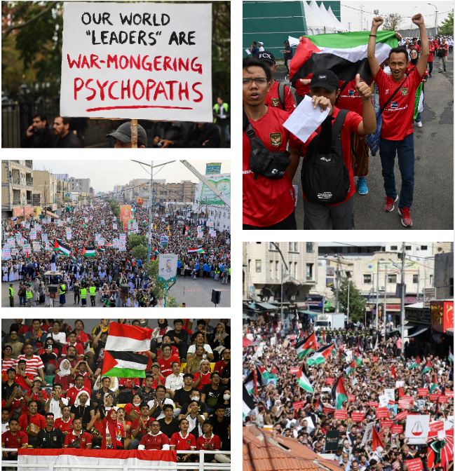 عواصم 10-11-2023 وفا- شهدت عواصم عربية وعالمية، اليوم الجمعة، مظاهرات شارك فيها عشرات الآلاف تنديدا بالمجازر التي ترتكبها دولة الاحتلال الإسرائيلي بحق أبناء الشعب الفلسطيني.