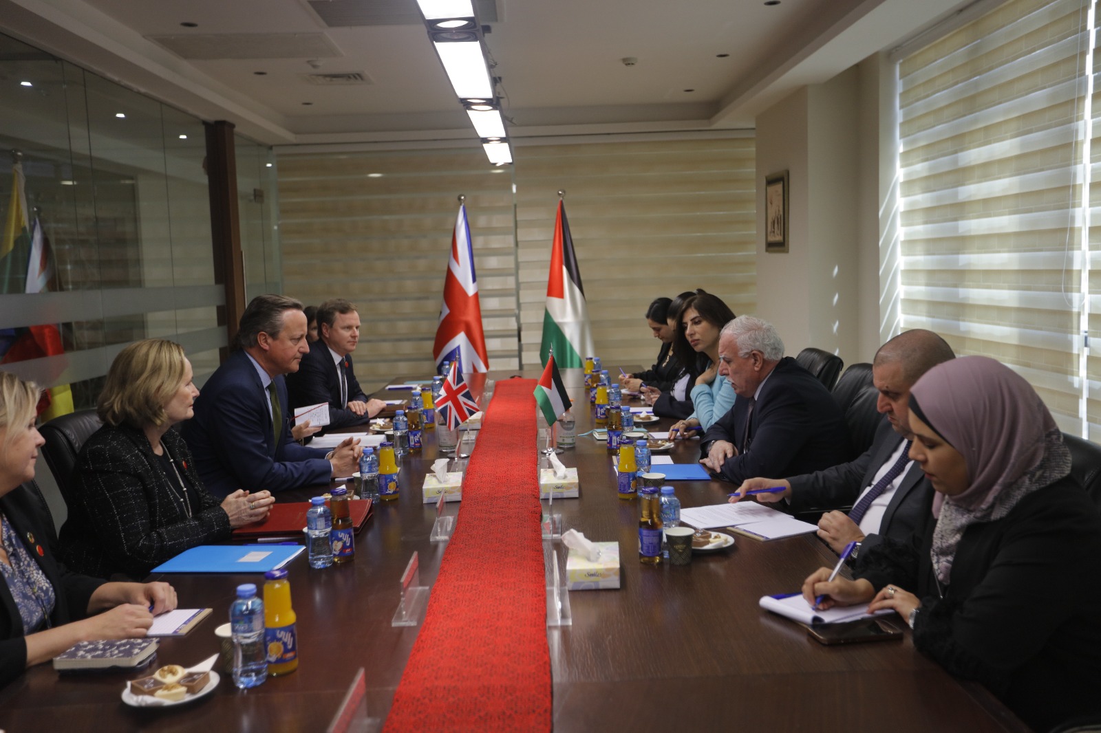 رام الله 24-11-2023 وفا- طالب وزير الخارجية والمغتربين رياض المالكي، وزير الخارجية وشؤون الكومنولث والتنمية البريطانية ديفيد كاميرون بالضغط لوقف العدوان على شعبنا.