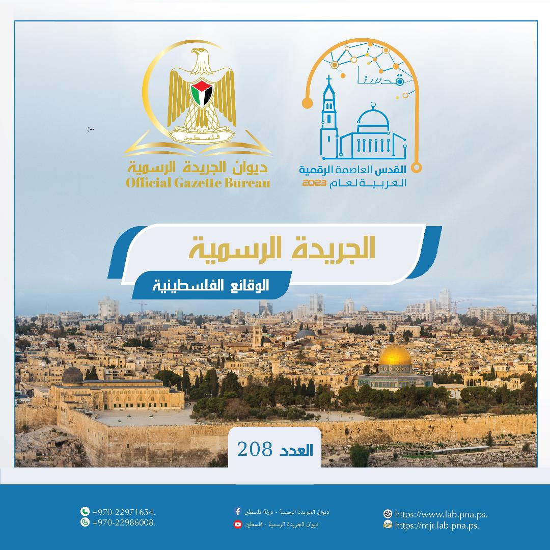 صدور العدد (208) من الجريدة الرسمية "الوقائع الفلسطينية"