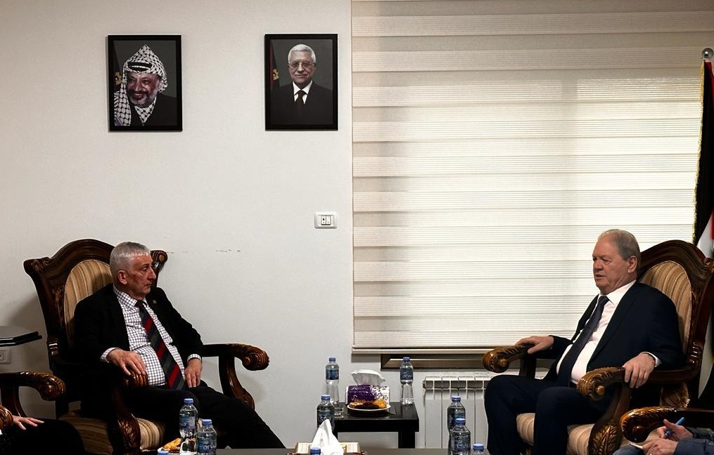 رام الله 26-11-2023 وفا- بحث رئيس المجلس الوطني الفلسطيني روحي فتوح، مع رئيس مجلس العموم البريطاني ليندسي هويل، التطورات الميدانية والأوضاع الإنسانية المأساوية في قطاع غزة، نتيجة حرب الإبادة الجماعية التي تشنها إسرائيل على الشعب الفلسطيني الأعزل.