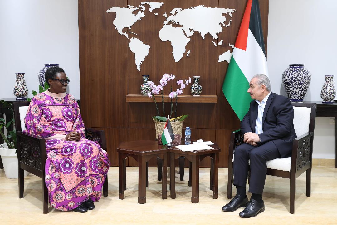 رام الله 27-11-2023 وفا- استقبل رئيس الوزراء محمد اشتية، اليوم الإثنين، في رام الله، رئيسة الاتحاد البرلماني الدولي توليا أكسون، بحضور نائب رئيس المجلس الوطني موسى حديد، حيث أطلعها على تطورات عدوان الاحتلال على شعبنا في قطاع غزة والضفة الغربية بما فيها القدس.