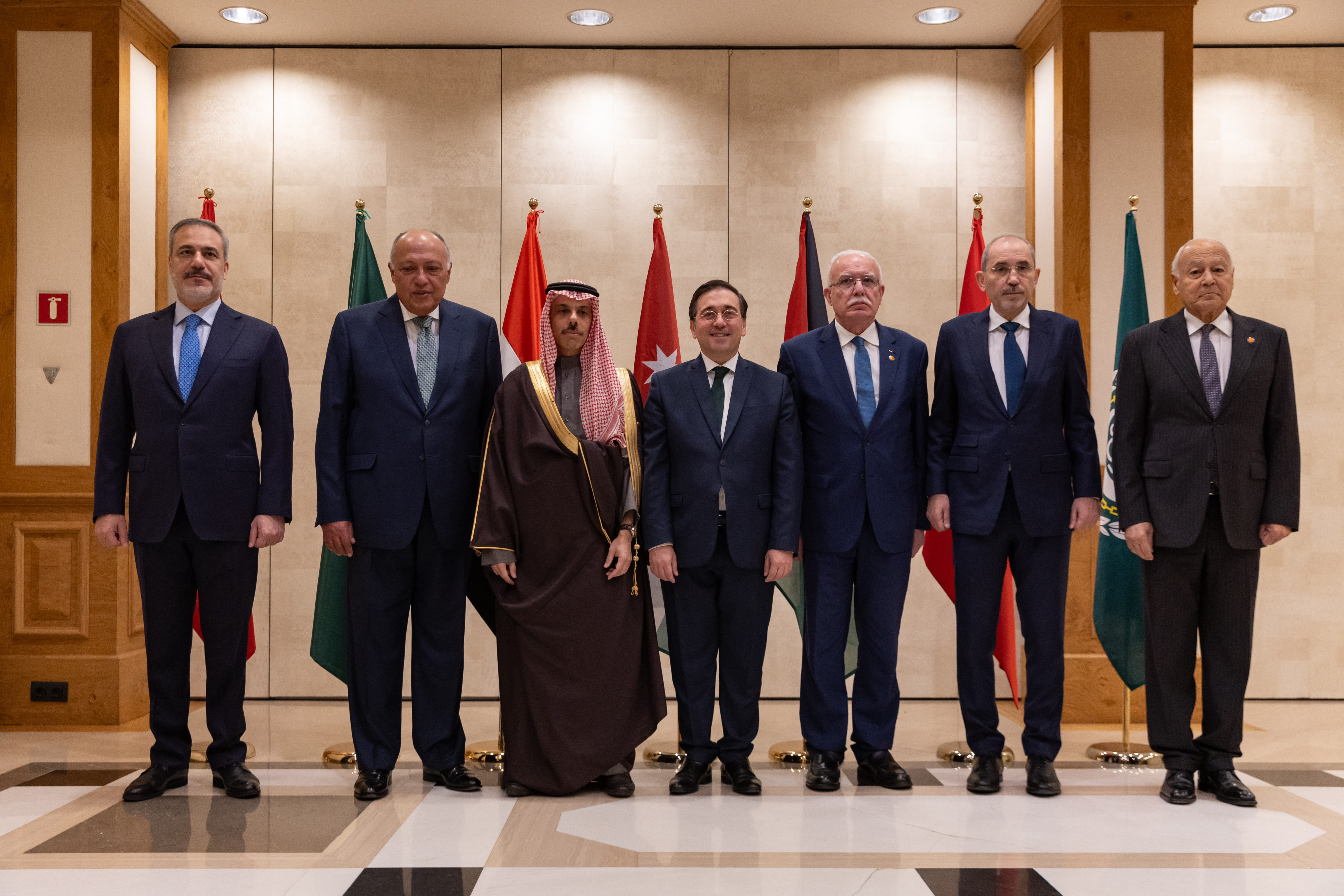 برشلونة 27-11-2023 وفا- التقى أعضاء اللجنة الوزارية المكلفة من القمة العربية الإسلامية المشتركة غير العادية، برئاسة وزير خارجية السعودية الأمير فيصل بن فرحان بن عبد الله، اليوم الاثنين، في مدينة برشلونة الإسبانية، بوزير خارجية مملكة إسبانيا خوسيه مانويل ألباريس.