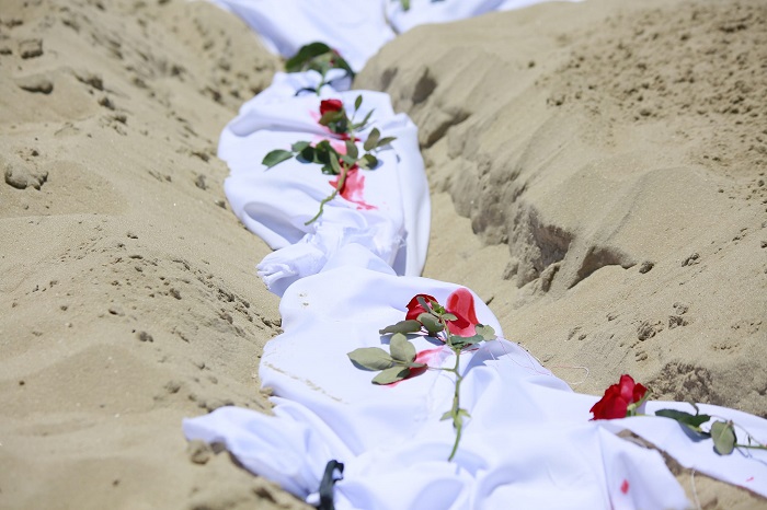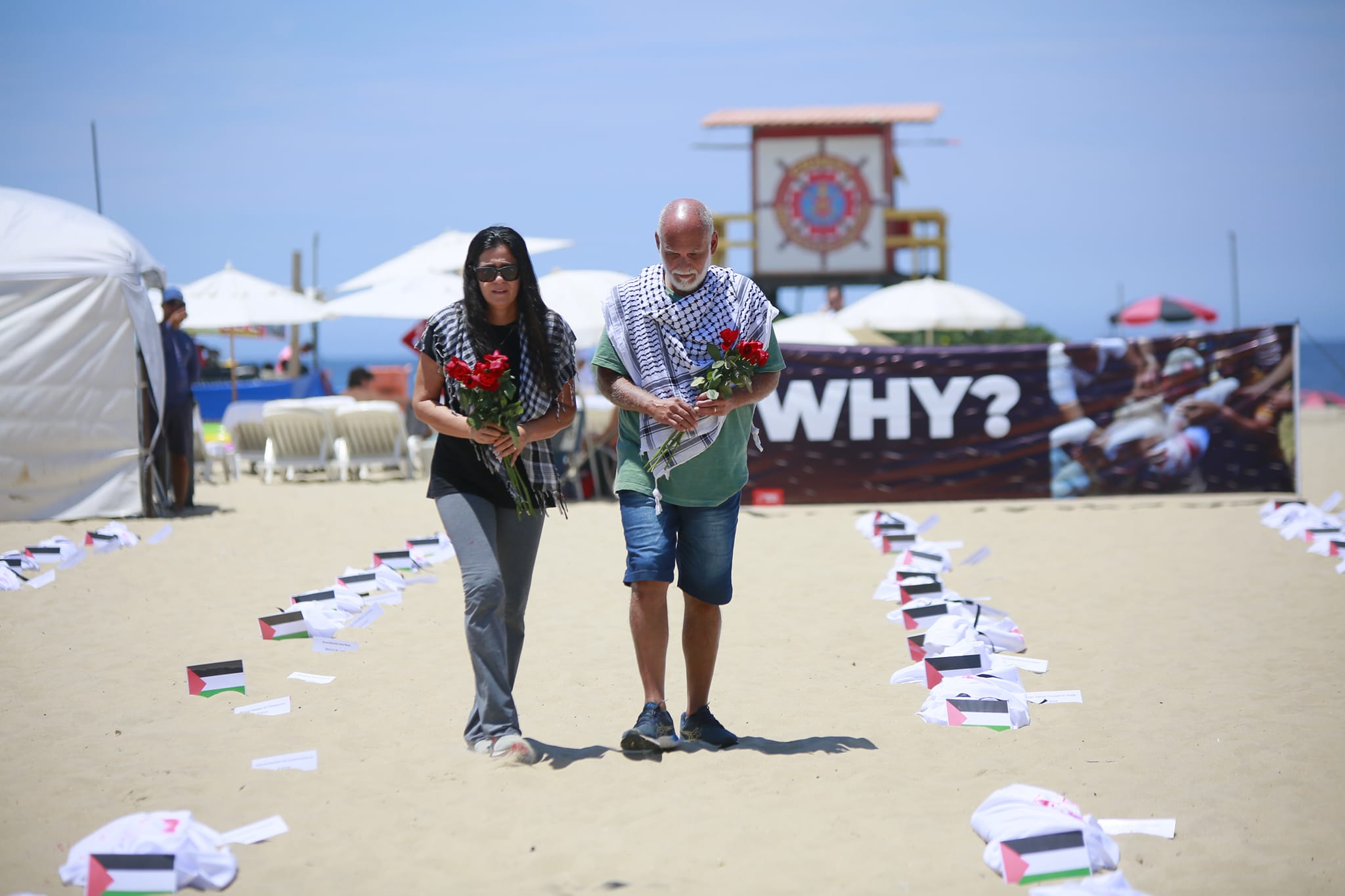 وتضمنت الفعالية، وضع أكفان بيضاء مع أعلام فلسطين، على شاطئ كوبا كابانا، تمثل جثامين الشهداء من الأطفال الذين ارتقوا في قطاع غزة جراء القصف الإسرائيلي المتواصل للمنازل والمباني السكنية والمنشآت المدنية والمستشفيات ومركبات الإسعاف ومدارس الإيواء ومواكب النازحين.