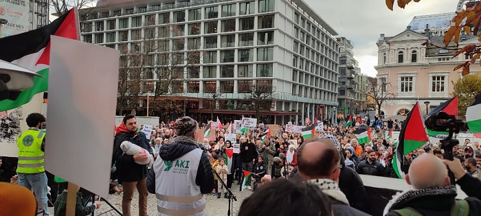 وفي ألمانيا، تظاهر الآلاف في برلين تضامنا مع أبناء شعبنا في قطاع غزة، الذي يتعرض لقصف اسرائيلي متواصل منذ السابع من تشرين الأول/أكتوبر الماضي.