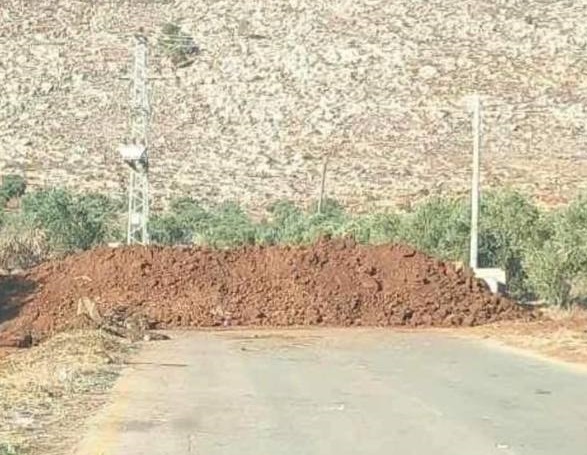 نابلس 9-11-2023 وفا- أغلقت قوات الاحتلال الإسرائيلي، اليوم الخميس، مدخل بلدة دوما جنوب نابلس، بالسواتر الترابية.