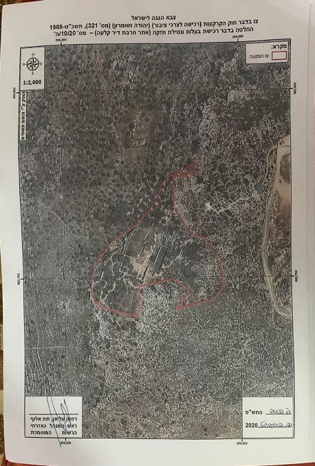 سلفيت 11-12-2023 وفا- أخطرت قوات الاحتلال الإسرائيلي، اليوم الاثنين، بالاستيلاء على منطقة "دير قلعة" الأثرية شرق بلدة دير بلوط غرب سلفيت.