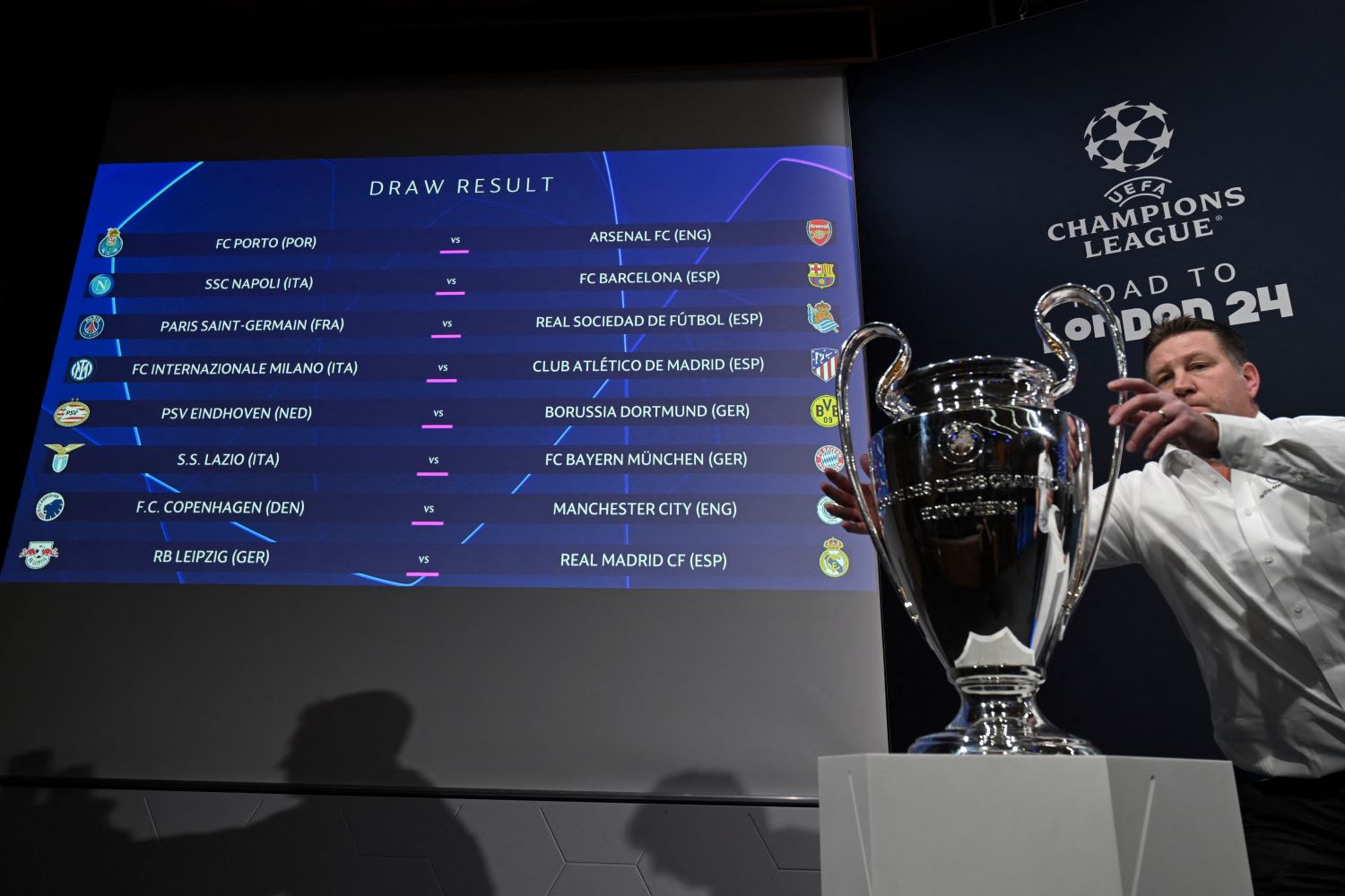 نيون 18-12-2023 وفا- أسفرت قرعة ثمن نهائي دوري أبطال أوروبا، التي سُحبت اليوم الإثنين، في مدينة نيون السويسرية، عن مباريات متوازنة للأندية الكبيرة، وكان اللقاء الأبرز بين وصيف النسخة الماضية إنتر ميلان الإيطالي وأتلتيكو مدريد الإسباني.