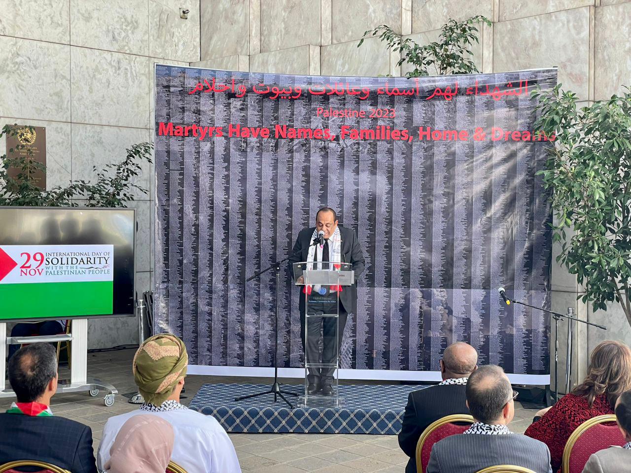 أديس أبابا 6-12-2023 وفا- أحيت سفارة دولة فلسطين لدى أثيوبيا، اليوم العالمي للتضامن مع الشعب الفلسطيني، بفعالية أقيمت بمقر الأمم المتحدة-اللجنة الاقتصادية الإفريقية، بالتعاون مع بعثة الجامعة العربية، ومجلس السفراء العرب المعتمد لدى أثيوبيا.