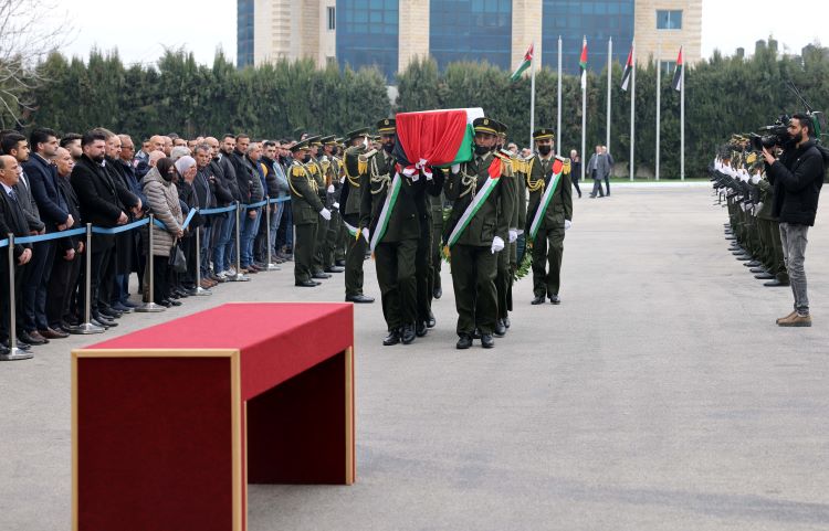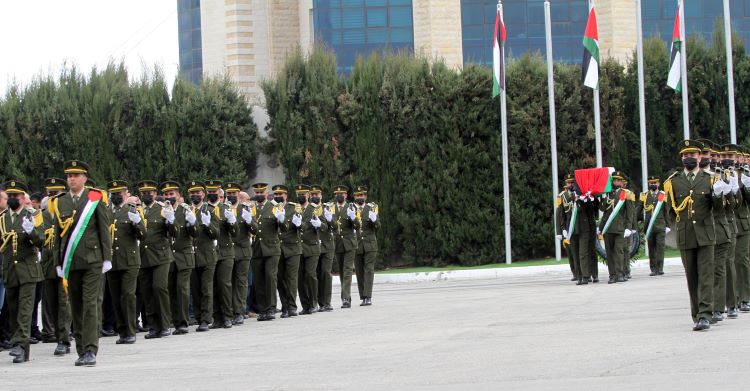 رام الله 23-2-2023 وفا- بمشاركة رئيس دولة فلسطين محمود عباس، شُيع، اليوم الخميس، جثمان القائد الوطني الكبير، رئيس الوزراء الأسبق، رئيس المجلس التشريعي الأسبق، العضو السابق للجنتين التنفيذية لمنظمة التحرير، والمركزية لحركة "فتح" أحمد قريع "أبو العلاء"، من مقر الرئاسة في مدينة رام الله.