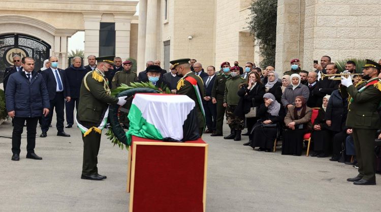 وألقى الرئيس عباس، نظرة الوداع الأخيرة على جثمان المناضل الوطني أحمد قريع، ووضع على نعشه إكليلا من الزهور.