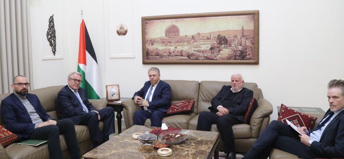 بيروت 27-2-2023 وفا- التقى سفير دولة فلسطين لدى الجمهورية اللبنانية أشرف دبور، اليوم الإثنين، منسق الأمم المتحدة الخاص لعملية السلام في الشرق الأوسط تور وينسلاندن بحضور أمين سر حركة "فتح" وفصائل منظمة التحرير الفلسطينية في لبنان فتحي أبو العردات.