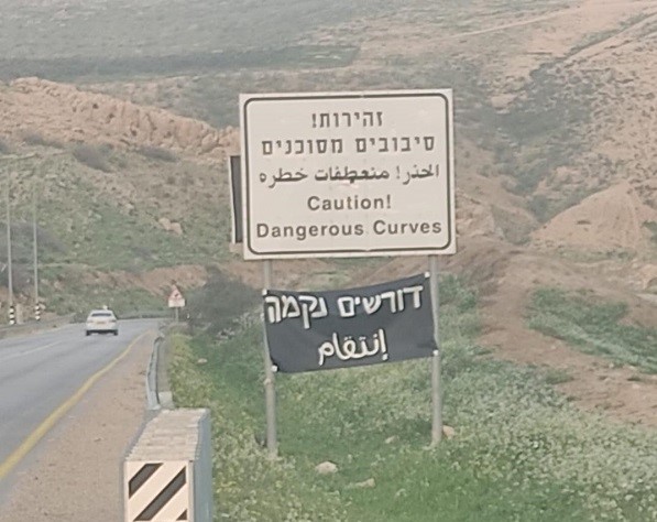 بعد تنفيذ هذا الاعتداء، وضع مستوطنون في ساعات المساء لافتة عند مفترق عين الحلوة، والذي يبعد حوالي كيلو متر عن المنطقة التي تعرضت لاعتداء، ويؤدي إلى باقي تجمعات الأغوار الشمالية، وكتبوا على اللافتة بالعربية "انتقام" في تهديد واضح لأهالي تجمعات الأغوار بمزيد من الاعتداءات.