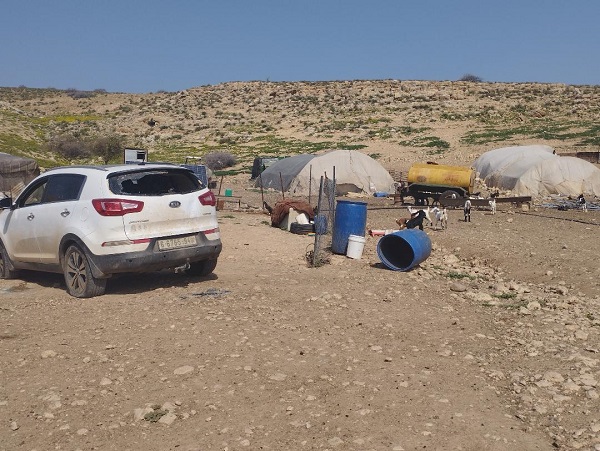 عند وصوله، كان حوالي 60 مستوطنا قادمين من "مسكيوت" القريبة ينتشرون بين خيام المواطنين ويعتدون بالضرب على الأطفال والنساء، بالإضافة لقيامهم بإتلاف الخيام وتمزيقها وإتلاف محتوياتها، وتكسير مركبات المواطنين.