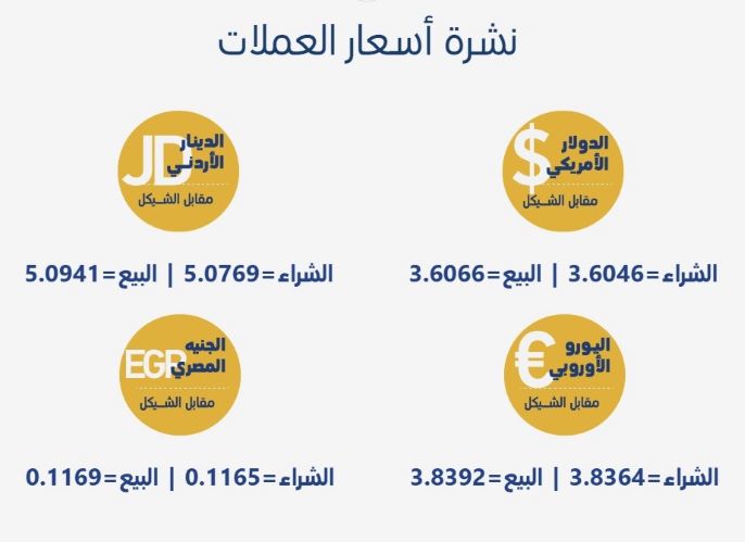 رام الله 12-3-2023 وفا- جاءت أسعار العملات مقابل الشيقل الإسرائيلي، اليوم الأحد، حسب سلطة النقد، على النحو التالي: