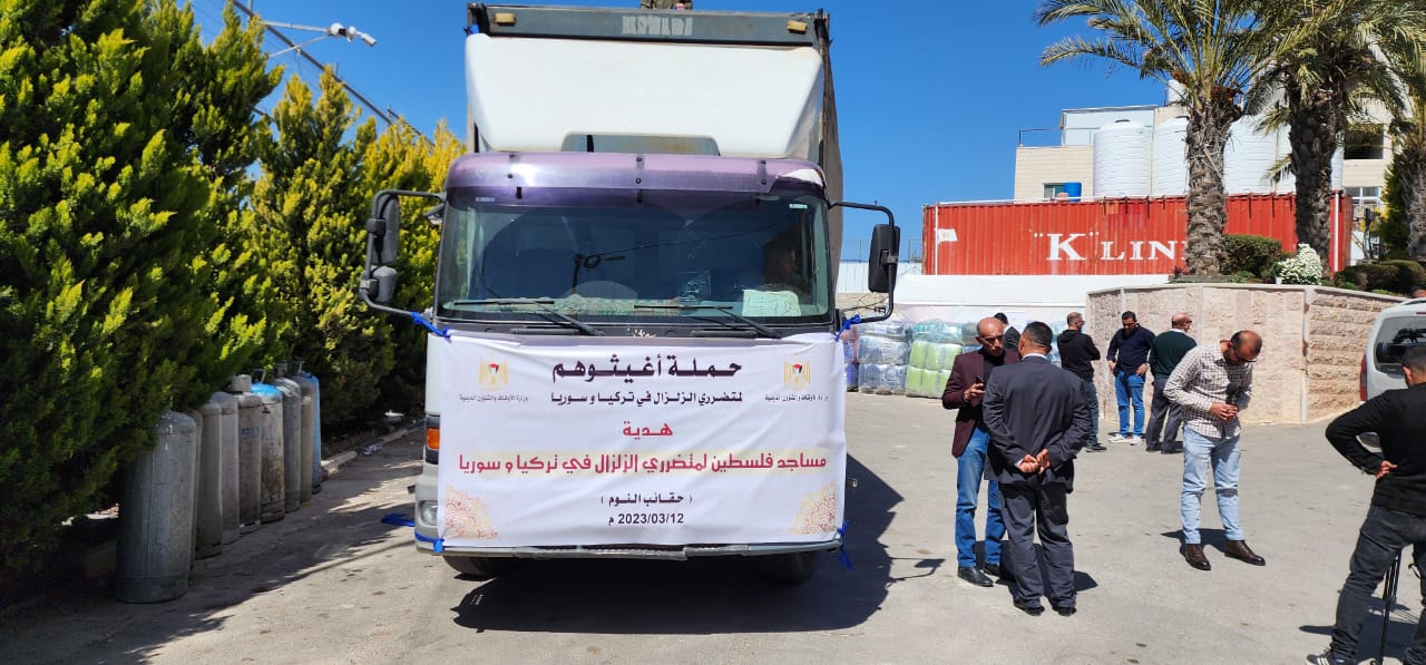 وكانت وزارة الأوقاف والشؤون الدينية، قد أطلقت حملة "أغيثوهم" لإغاثة متضرري الزلزال في تركيا وسوريا في 9 شباط الماضي في مساجد فلسطين، وجمعت لها 8 ملايين شيقل، شملت ترتيب صناعة ونقل "حقائب نوم"، حيث وقعت الوزارة اتفاقية لتوريد 20 ألف حقيبة نوم لصالح منكوبي الزلزال في تركيا وسوريا، وأشرفت عليه بشكل مباشر مؤسسة المواصفات والمقاييس طيلة عملية الإنتاج وحتى استلامها اليوم لترتيب نقلها.