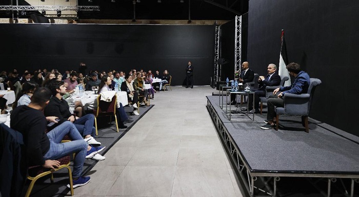 رام الله 14-3-2023 وفا- قال رئيس الوزراء محمد اشتية خلال لقائه ما يقارب 300 طالب من جامعة هارفارد الأميركية، اليوم الثلاثاء برام الله، إن "السمع والقراءة عن فلسطين لا يغنيان عن زيارتها ورؤية الحقائق والأوضاع على أرض الواقع".