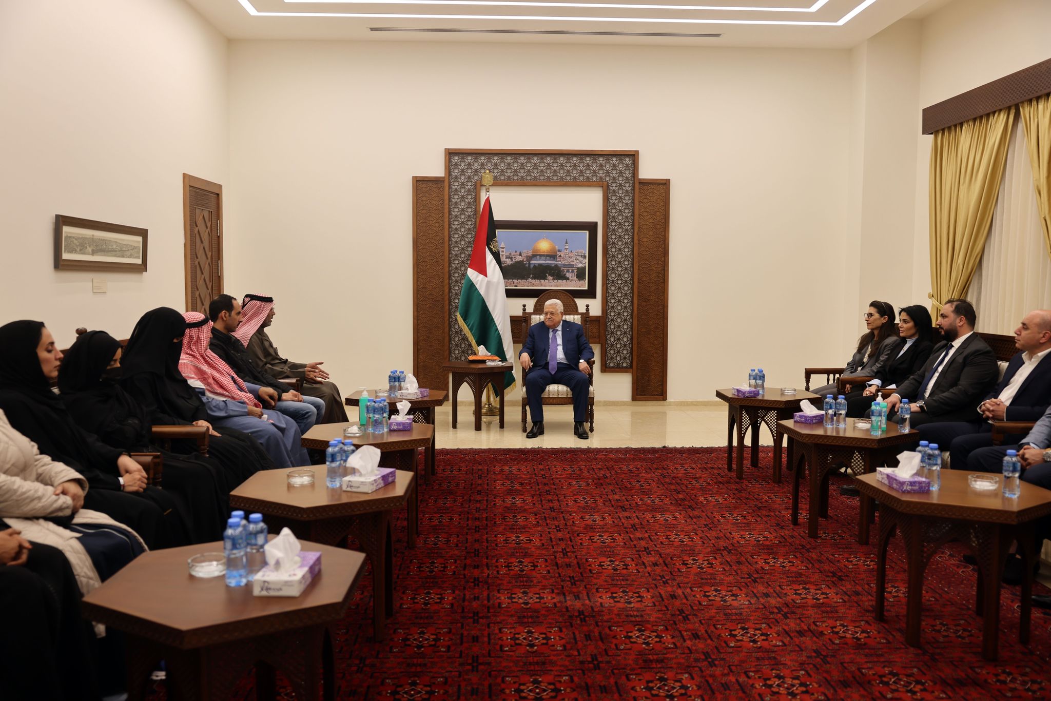 رام الله 15-3-2023 وفا- استقبل رئيس دولة فلسطين محمود عباس، مساء اليوم الأربعاء، بمقر الرئاسة في مدينة رام الله، وفدا من دولة قطر الشقيقة برئاسة عامر الجابري والدكتورة منى النعيمي.