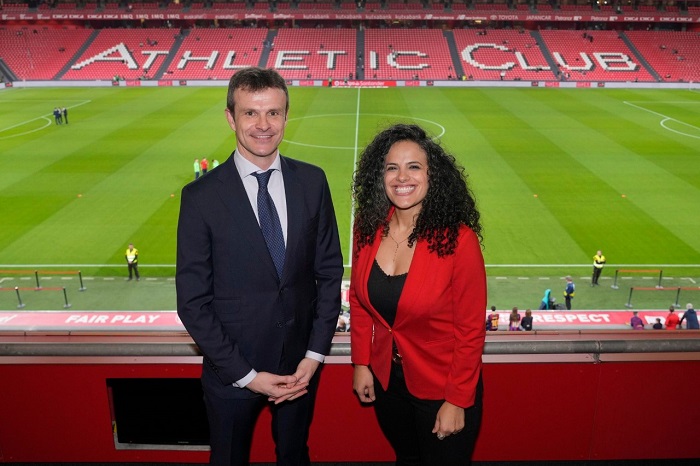 بيت لحم 15-3-2023 وفا- عين نادي أثلتيك بلباو الإسباني، الرياضية وأول قائدة لمنتخبنا الوطني النسوي لكرة القدم، هني ثلجية، أول سفيرة رياضية للنادي في العالم.
