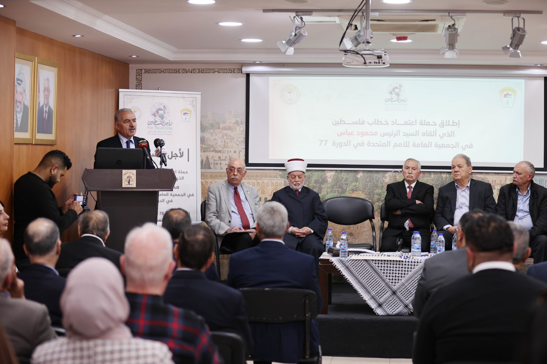 وقال اشتية إن حراكنا الوطني يجب أن يرتكز بشكل أساسي على الذين يؤمنون بحل الدولتين، ما يتطلب منهم الاعتراف بدولة فلسطين، لافتا إلى أن نضالنا الوطني هو من أجل إنهاء الاحتلال الإسرائيلي وتجسيد الدولة الفلسطينية. وحديث العالم عن حل الدولتين غير كاف، لأنه يجب أن يتجند وأن يخلق جبهة من أجل إنهاء الاحتلال.